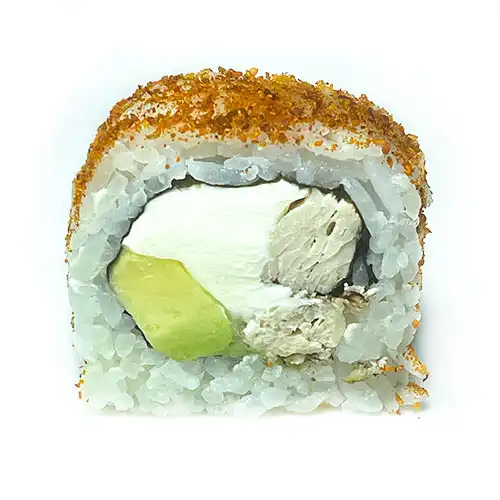 Roll envuelto en merkén, relleno de queso crema y palta mas proteína a elección (10 Piezas)