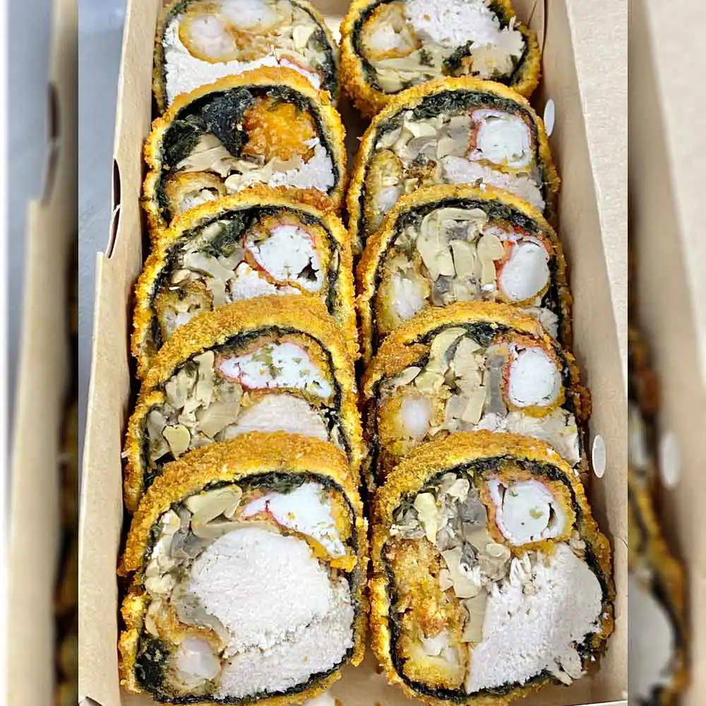 Roll sin arroz, con envoltura a elección, 4 rellenos a elección, bañado en nuestra rica salsa teriyaki (10 Piezas)