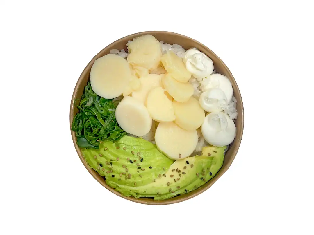 Base de arroz, queso crema, palta, cebollín, sésamo y Palmito